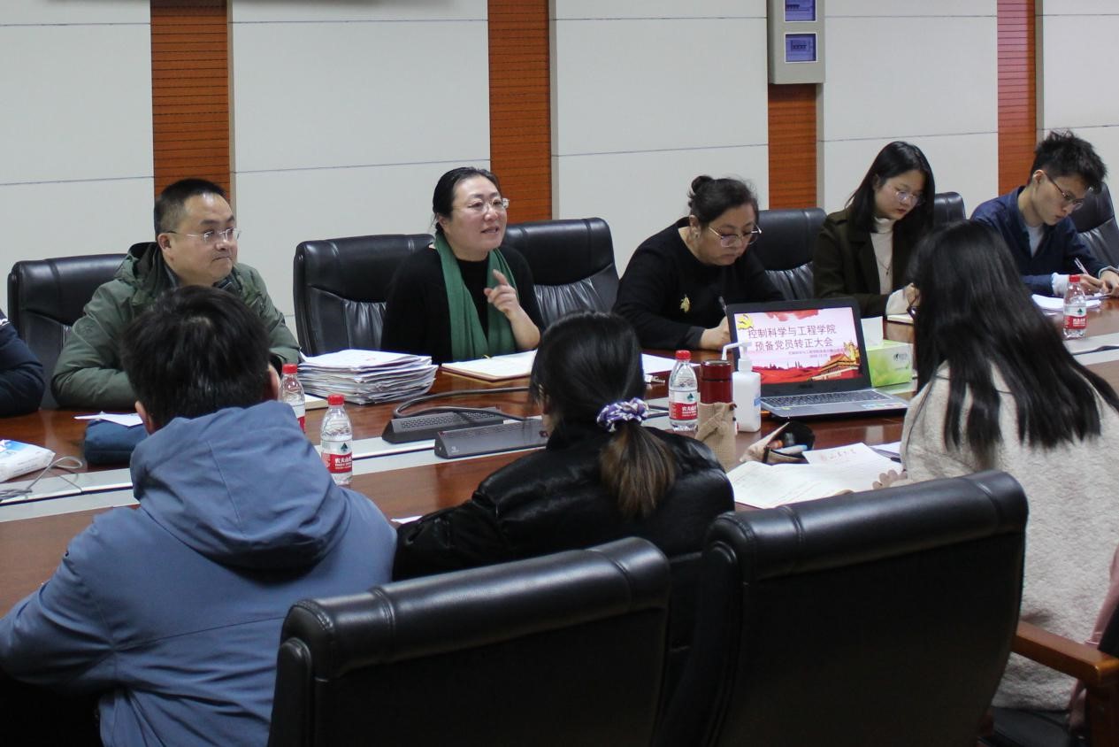 晚7时,大会正式开始。本次支部大会主要讨论梁田等8名预备党员同志按期转为中国共产党正式党员的问题。李文振介绍本次会议的主题,8名预备党员依次宣读转正申请书,介绍自己预备考察期间工作、学习、思想等方面的发展变化和参与支部活动的情况,并明确表达希望按期转为正式党员的决心。在民主评议环节,两名与会党员介绍该预备党员在预备考察期的表现,党支部成员经过严肃认真的讨论后,一致认为8名同志在预备期内思想积极,认真学习党的路线、政策、方针;工作中认真负责,积极协助党组织开展各项工作;学习勤奋刻苦,起模范带头作用;积极参加党内各项活动,符合成为正式党员的条件。经依次举手表决,8位预备党员的转正申请均全票通过。随后,李文振宣读决议,8名预备党员在预备考察期间的不足并希望他们在今后的工作中加以改正。大会最后,吴晓晴作总结性发言,她首先对按期转正的8名正式党员表示祝贺,并对各位他们提出更严格的要求:进一步提升思想与标准,身体力行地起到标杆作用,时刻牢记党员的身份与义务,树牢“四个意识”、坚定“四个自信”,做到“两个维护”。希望在他们的带动之下,预备党员、先进团员、先进群众都能够积极地向党组织靠拢。至此,本次大会圆满落下帷幕。