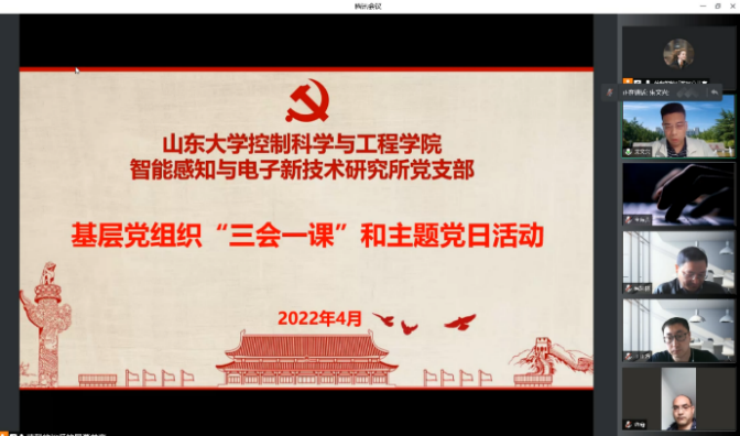 4月17日下午,十大买球的正规网站智能感知与电子新技术研究所党支部开展“三会一课”和主题党日活动。研究所全体教师、部分硕博研究生参加了活动。活动由学院副院长朱文兴主持。