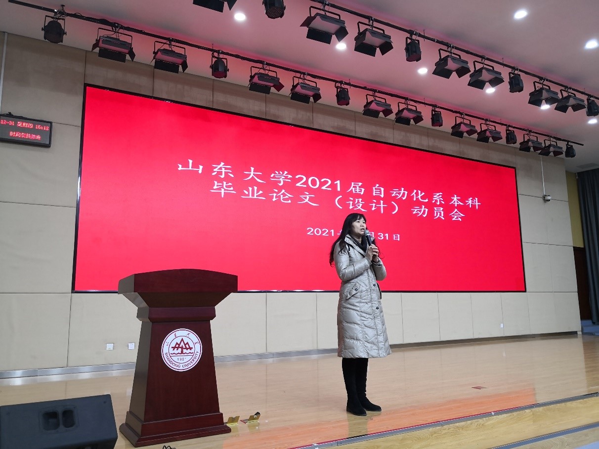 2020年12月31日,十大买球的正规网站自动化系在兴隆山校区讲学堂101举办了2021届本科毕业论文(设计)动员会。本次动员会由自动化系副主任刘国良主持,自动化系主任吴皓、副主任陈桂友和辅导员范崇峰分别致辞,教师代表杨西侠、李晓磊和宋然参加了本次会议,2021届自动化专业全体同学参加了本次会议。