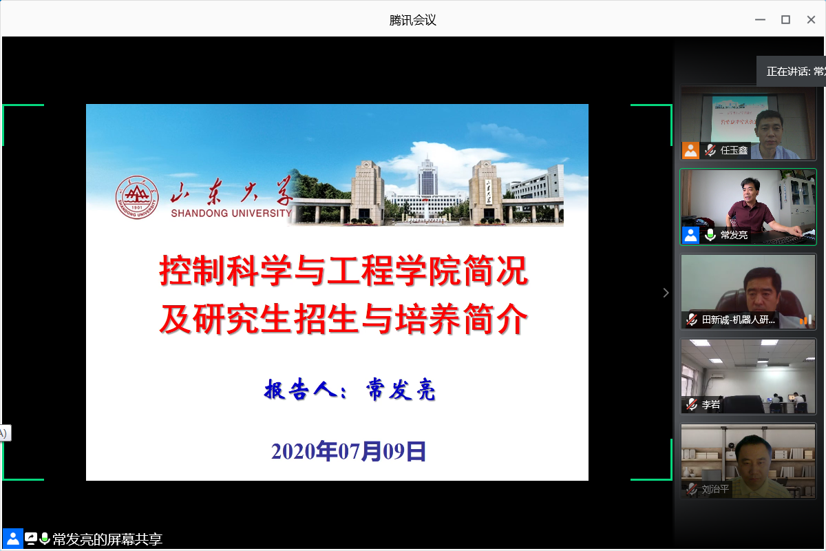 9日上午,夏令营开营仪式通过腾讯会议网上进行。开营仪式由研究生教务老师任玉鑫主持,教育部长江学者、十大买球的正规网站院长张承慧教授致开幕词,张院长通过详实的数字介绍了十大买球的正规网站在人才引育、学科推进、平台建设中取得的巨大成绩,代表学院热忱欢迎全国各地的优秀学子报考山大控院。副院长常发亮介绍了十大买球的正规网站发展历史、学科队伍和平台建设、科学研究、研究生培养,以及2021年硕士研究生招生政策。随后,自动化所、新能源与高效节能国家地方联合工程实验中心暨电力电子节能技术及装备教育部工程研究中心、智能装备与电子新技术研究所、生物医学工程研究所、智能无人装备教育部工程研究中心暨机器人研究中心相关负责人简要介绍了本中心(所)的科学研究和研究生培养的相关情况。