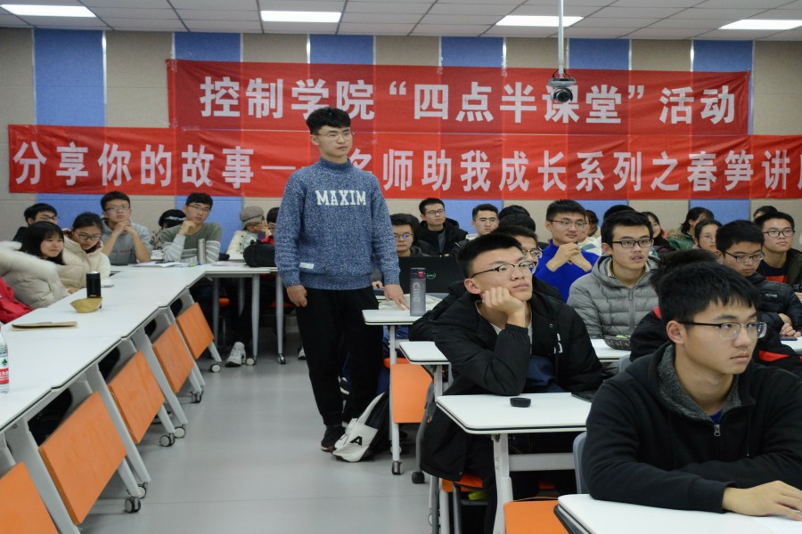 晚6时30分,讲座正式开始。主持人先简单向我们介绍了刘教授的个人经历和学术成果。随后,刘教授便开始了题为“寻找和发现自我”的专题讲座,主要向同学们介绍了自动化专业未来的科研方向和就业方向。刘教授建议同学们要充分了解自己的优势和劣势,再根据自己的个人特点和长处决定未来发展的方向,切勿在没有对自己进行系统性评估前盲目跟风,否则只会浪费个人优势和潜力,难以持之以恒地做好每一件事。在谈到学习效率时,他认为学习这件事情七分在于天赋,三分在于后天的努力,天赋决定了一个人的更倾向的优势之处,努力则决定了最终能达到的高度。刘教授还给同学们讲述了自己求学期间的小故事,引起共鸣,让同学们倍感亲切。在答疑解惑环节,同学们积极踊跃地提出多个方面的问题,刘教授一一耐心解答,并且留下了自己的联系方式,以便于今后和同学们进行更加深入地交流。至此,本次讲座圆满落下帷幕。