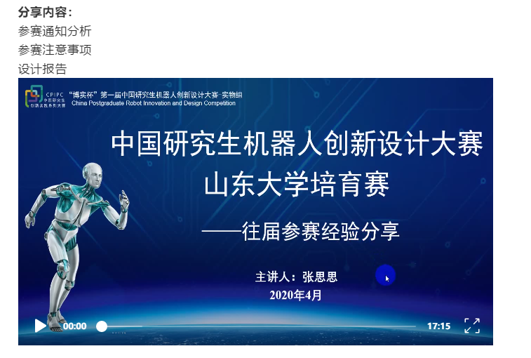 这次经验分享会,通过张思思同学的讲解,准备参赛的同学会对比赛流程和设计报告有了深刻的理解与认识,同时祝愿大家都能在今年的比赛中斩获佳绩。