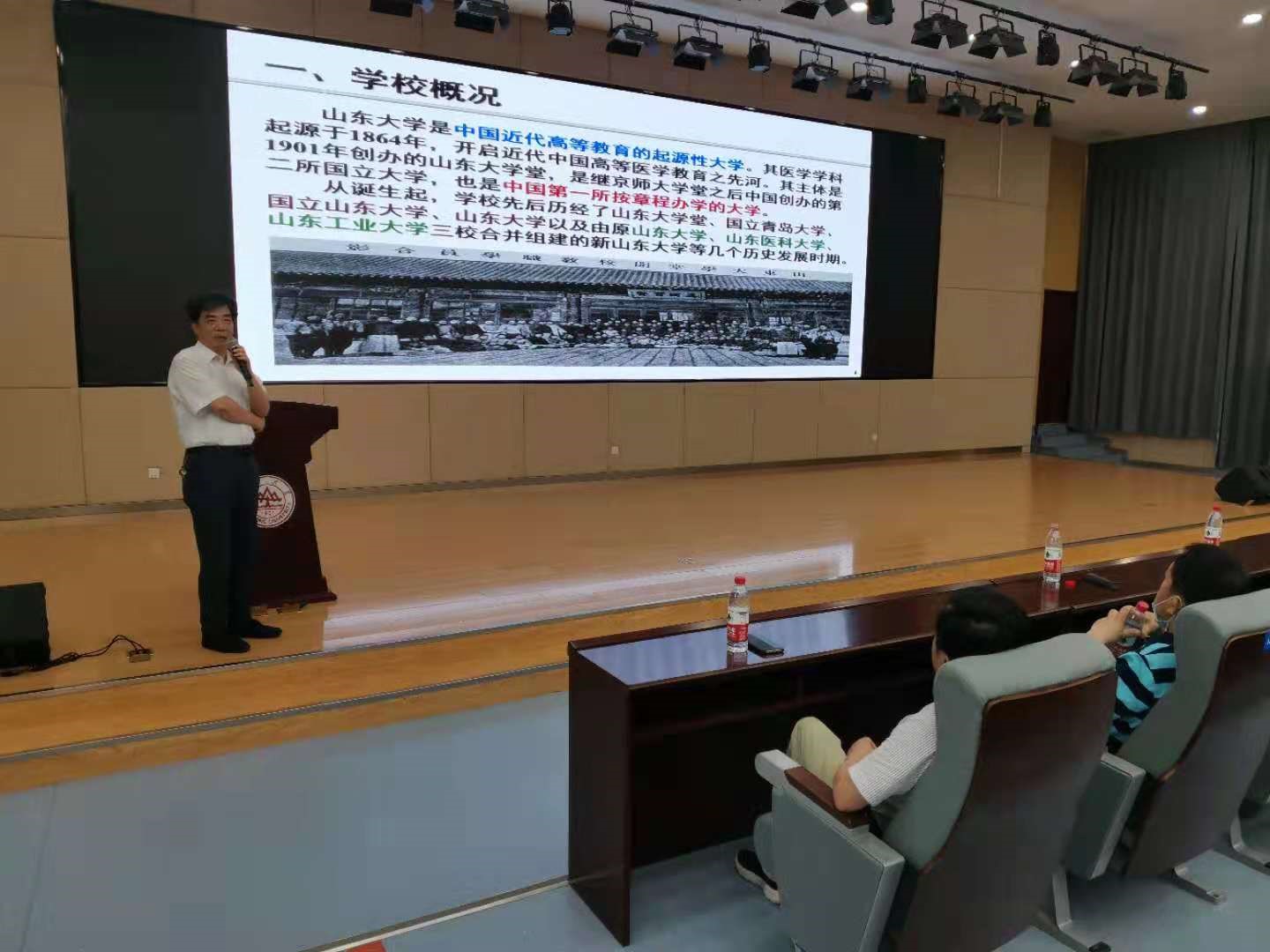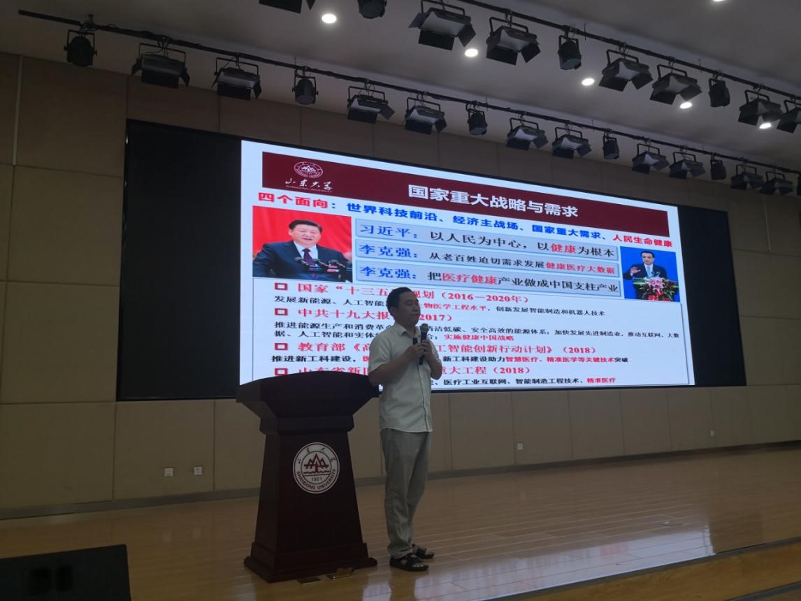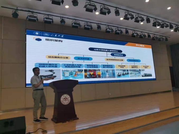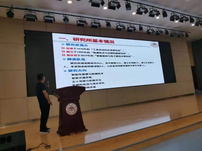 常发亮教授从学校文化、学院发展历程为切入点,结合多项研究成果,具体介绍了学院在服务国家重大战略和地方经济建设、学科建设、人才培养、科学研究以及研究生教育等方面情况。随后,姜明顺、田新诚、陈阿莲、王光臣、刘治平等五位学科带头人介绍了智能感知与电子新技术研究所、机器人研究中心、新能源与高校节能国家地方联合工程研究中心、自动化研究所、生物医学工程研究所的具体情况,重点向同学们展示了智能感知、机器人研究、工业互联网、物流工程、可再生能源发展、随机控制、智慧医疗等研究方向和研究成果。
