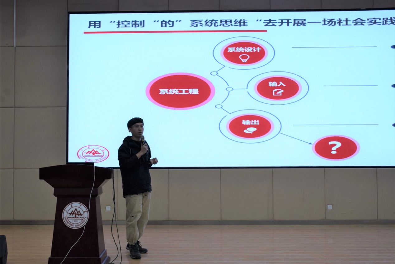 社会实践形式多样,不变的是同学们奉献社会的初心,闪烁的是山大人服务社会的精神。徐淑娅同学通过独特的选题经历,指出社会实践的选题可以遵从自己的内心,并突出了多平台宣传的重要性。刘晨鸣同学结合控制系统的结构介绍了社会实践的关键步骤,引导学生用“控制”的系统思维开展社会实践。许金壮同学则重点强调了社会实践对人际交往的帮助,并鼓励跨年级、跨专业选择队友。