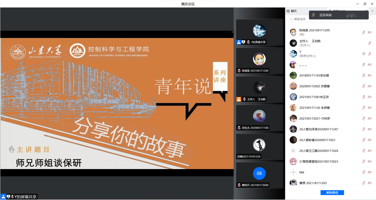为鼓励学生学习热情,树立学生发展目标,帮助学生进一步了解保研政策。3月25日,十大买球的正规网站邀请了一批有相关经验的师兄师姐,以线上会议的形式开展了本次“青年说——师兄师姐谈保研”讲座。邀请分享的同学分先后对个人的推免保研经验进行分享,400余人参与本次会议。