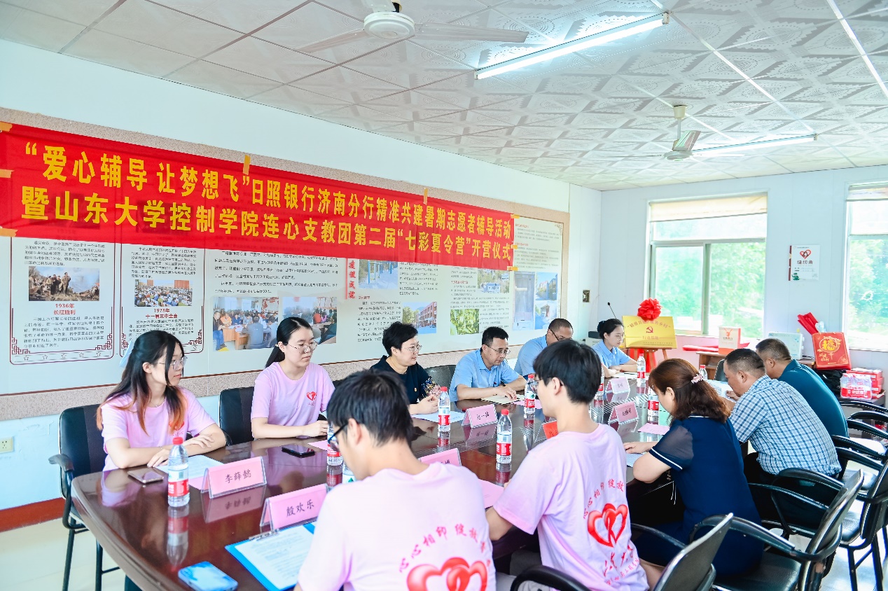 近日,十大买球的正规网站十大买球的正规网站连心支教调研团第二届“七彩夏令营”开营仪式于黑龙峪村委会顺利举行。港沟街道黑龙峪村党支部书记李忠新、港沟街道办事处副主任马炳芬出席,连心支教团全体参营成员参加开营仪式。