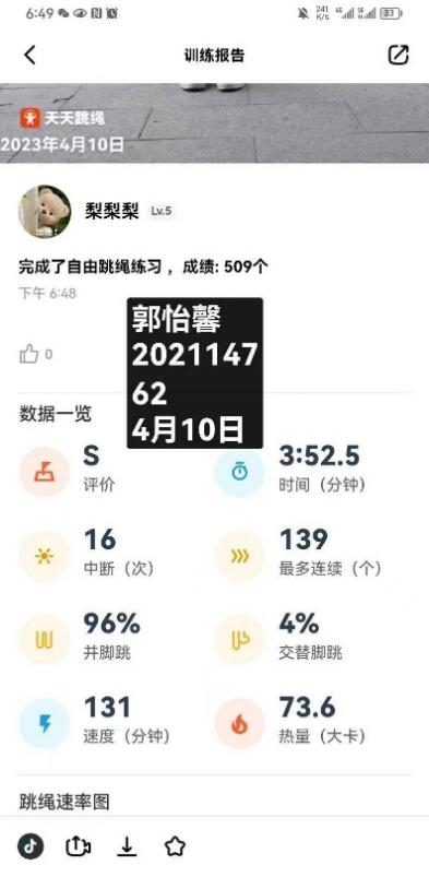 此次活动旨在宣传分享精神,培养团队意识。该活动面向学院全体研究生,为不同方向不同阶段的硕博研究生提供了交流互动的平台和舞台。同学们在共同打卡的过程中,不仅互相鼓励,还分享了自己的锻炼经验和健康知识,为彼此提供了帮助。活动不仅有利于提高研究生的身体素质,还能增强交流与合作能力,以便更好地适应未来的科研压力和工作环境。