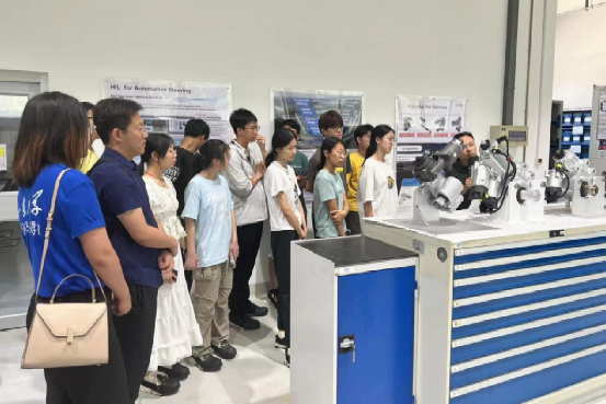 深入企业一线,拓宽国际视野。设计及工艺专家江超及测试经理权志民带领游学团真正走入生产研发一线,参观产品制造车间和研发中心,了解每个区域的分工及各类机器的工作原理;测试专家石振振、系统专家王光芒指导同学们亲自体验转向系统产品的操作与应用。在硬件经理王钊、软件经理郭民、系统经理吴嵩带领下,游学团前往各部门小组观摩学习,了解公司日常工作,体会博世开放包容的企业文化;并参与各部门的技术讨论国际会议,直观感受行业前沿技术与应用,了解目前行业现状与先进技术,拓宽专业眼界与国际视野。