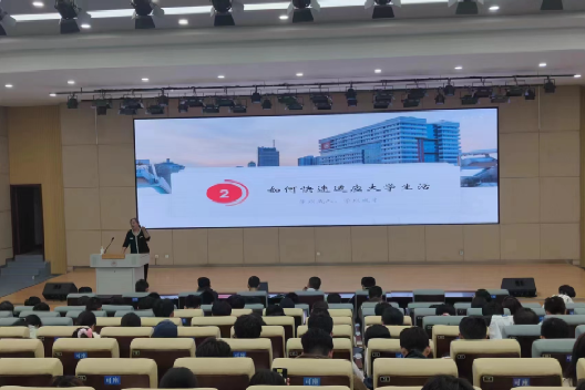 讲座伊始,刘慧慧着重分析高中生活与大学生活的各种区别,对新生入校后普遍存在的情绪困扰问题进行解答,从运动、学习、休息等不同方面向同学们详细介绍心理调适方法,旨在帮助同学们做好心理疏导和情绪调适,尽快完成身份的转变,适应大学生活。之后,针对同学们最为关注的学习问题,刘慧慧以“以不变应万变”与“以变应不变”作为切入点,向同学们讲解如何调整自身学习状态,她建议同学们要合理规划时间,提高学习效率,寻找适合自己的学习方法,学会从“外驱式学习”转变为“内驱式成长”。刘慧慧强调,大学的成长,不仅是学业的提升,更是人生的历练,要树立远大理想,把短期目标和长期规划结合起来,积极参与广泛的阅读、适度的社会实践和丰富多彩的校园活动,追求德智体美劳全面发展,培养积极心理品质,以健康向上的心态迎接未来四年的大学生活。