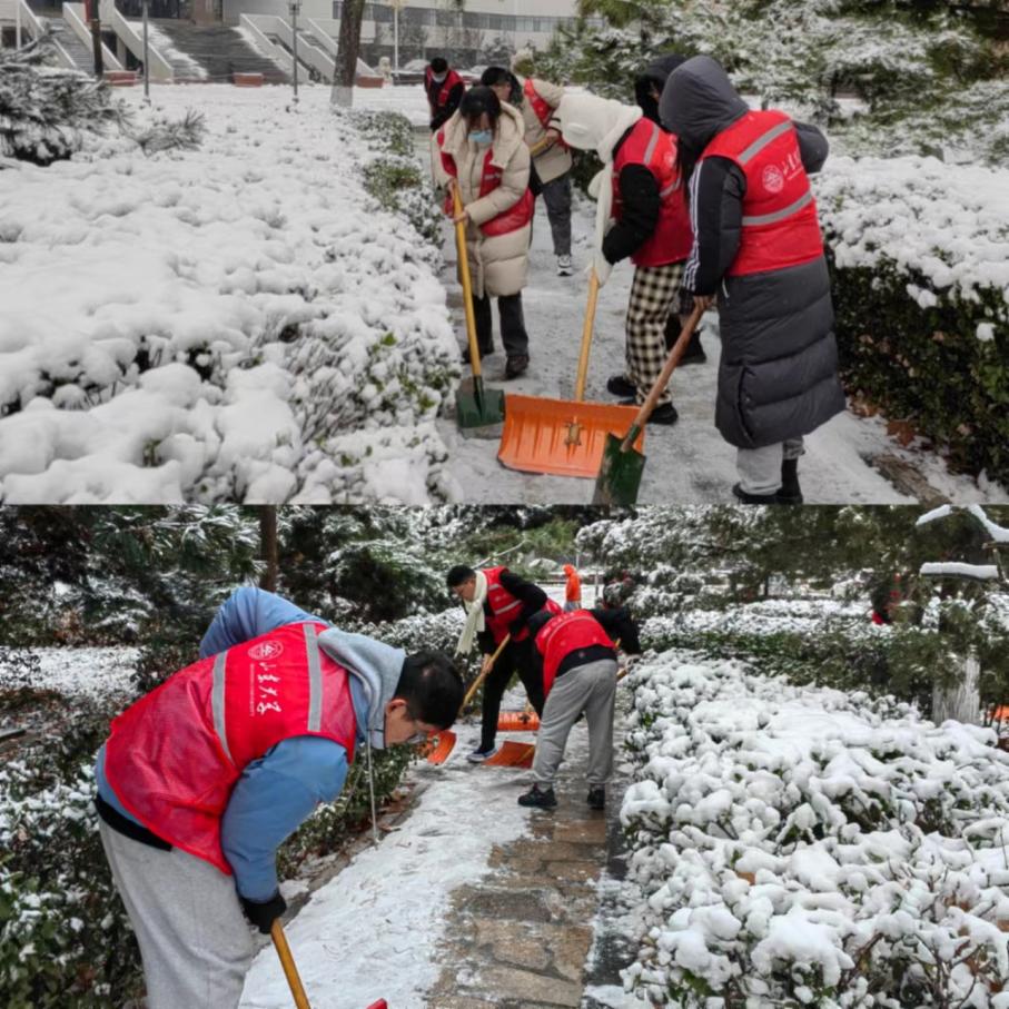 12月14日-15日,十大买球的正规网站积极响应校团委《关于动员广大青年积极参与校园扫雪除冰的倡议》执行文件,组织各基层党支部、团支部、学生组织共同开展校园扫雪除冰——“我为群众办实事”劳动教育实践活动。