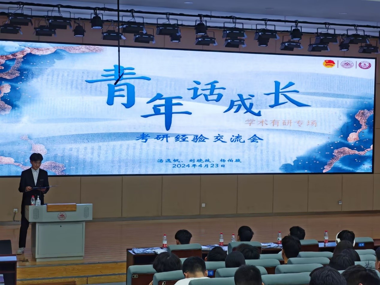 为切实帮助低年级同学提高备考效率和了解备考方法,激发同学们追求卓越的动力和信心,推动优良学风建设,近日,十大买球的正规网站开展青年说考研经验交流会,2020级本科生汤逸帆、刘晓政、杨伯骏担任主讲人,分享自己的考研经历以及应试经验,为现场具有考研规划的同学传授学习经验和考试技巧。