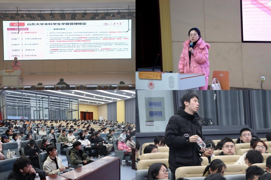 讲座伊始,孙亚对《十大买球的正规网站本科学生学籍管理规定》进行深度解读,确保教学工作的规范性和严谨性。她解读了本科人才培养方案的构成体系和指导作用,阐述了关键内容,重点围绕学生选课的常见问题与毕业审核要求等方面展开系统讲解,并指出重要时间节点和事项,特别是毕业生要把握重点,提前规划,加强学术诚信。在选课常见问题阶段,孙亚介绍了选课流程,帮助同学们规避选课误区,轻松、高效地完成选课。针对选课流程中的核心环节作出重点提醒,孙亚强调需严格参照班级课表选择必修课程,提醒学生注意课程代码一致性及重修课程属性修改等细节,防止出现选择同名课程但不同编号导致无法毕业的现象。在毕业审核要求阶段,她特别指出除明确学分、绩点、体测等硬性指标外,“稷下创新”“齐鲁创业”等特色课程以及人文、国学等相关课程也有相应的学分要求。最后孙亚根据毕业审核所遇到的常见问题,例如,毕业时间节点、任选课程学分的补修等内容进行了详细解答。