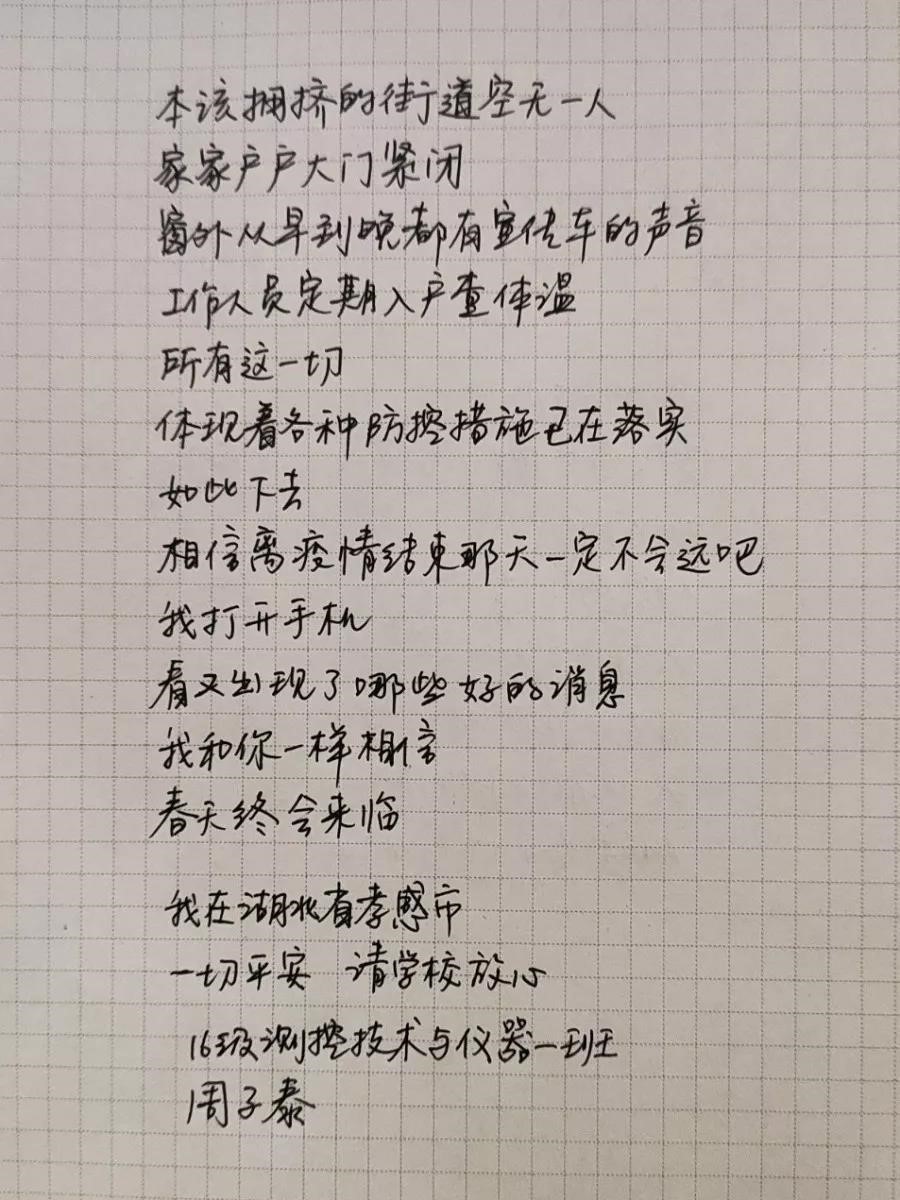 十大买球的正规网站各社团还开展了手写加油接力活动,社团成员将对武汉的鼓励,对祖国的祝福付诸笔端,写下自己对身处疫情重灾区的同胞和奋战在抗疫一线的医护人员的殷殷情谊。同时,连心支教调研团、新青年学会、动漫爱好者联盟协会、智能车社团、绿领一族协会等多个社团在社团自媒体平台上发布抗疫推文,展现活动成果,号召更多人关注疫情、助力武汉,十大买球的正规网站社团联合会发布的推文“待到山花烂漫时,我们再相见”也获得良好反响。