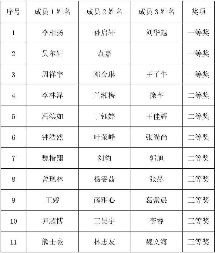注:同等奖项排名不分先后