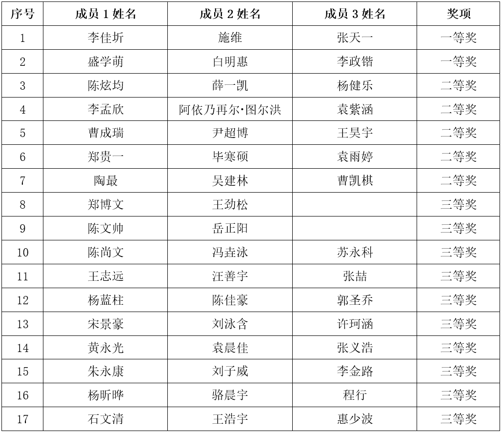 第七届“学以致用”编程能力大赛竞赛启动以来,广大同学积极参与,热情高涨,充分将理论知识系统应用于实践,深化了对理论与实际结合的认识,同时增强了团队凝聚力,提升了创新探索意识。经评审委员会对参赛选手作品测评及决赛答辩,评选出一等奖2项,二等奖5项,三等奖10项,现公布竞赛成绩如下。