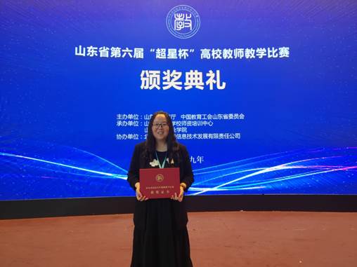 山东省高校教师教学比赛由山东省教育厅、中国教育工会山东省委员会联合主办,山东省高等学校师资培训中心承办,是我省最高级别的教学赛事。本届比赛从2018年11月开始启动,在长达半年多的时间内,完成了各高校内部选拔赛、省级初赛、复赛、决赛等多个竞赛环节的层层选拔。在 “讲好一门课”的宗旨下,每位参赛教师围绕自己教授的一门课程录制了现场教学视频、详细编写20个课时的教学设计、精心制作了20个教学节段PPT;复赛和决赛采用现场比赛方式,在20个教学节段中随机抽取一节,进行现场教学展示和教学反思。最终在评委专家严格评比和匿名打分后确定了省赛一、二、三等奖的获奖者。获得该项比赛的奖项,不仅是对获奖者教学能力和教学效果的高度认可,而且是对青年教师投身教学、奉献教学的极大鼓舞。