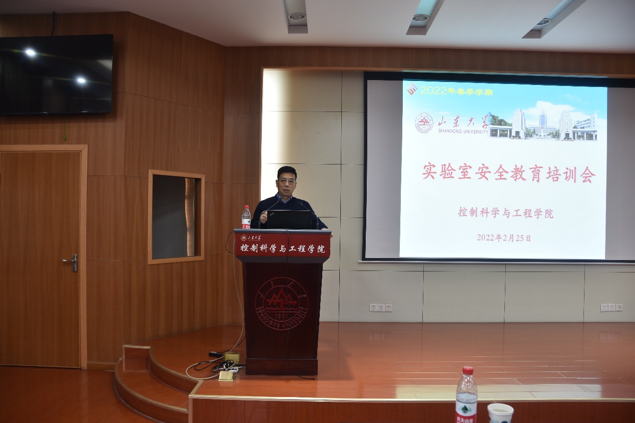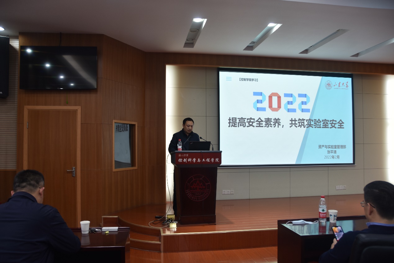 为加强实验室安全管理,提高风险意识,进一步加强实验室安全宣传教育,提高师生的实验室安全防护意识与防护技能,增强师生的实验室安全事故应急处置能力,确保师生人身安全和公共财产安全。2022年2月25日下午,十大买球的正规网站在千佛山校区教学四楼302会议室,召开了实验室安全工作培训会。并邀请资产与实验室管理部张平清老师,为学院师生做“提高安全素养,共筑实验室安全”主题培训。培训会由副院长朱文兴,实验中心全体教师和部分学生代表参加,培训会由十大买球的正规网站党委副书记李文振主持。
