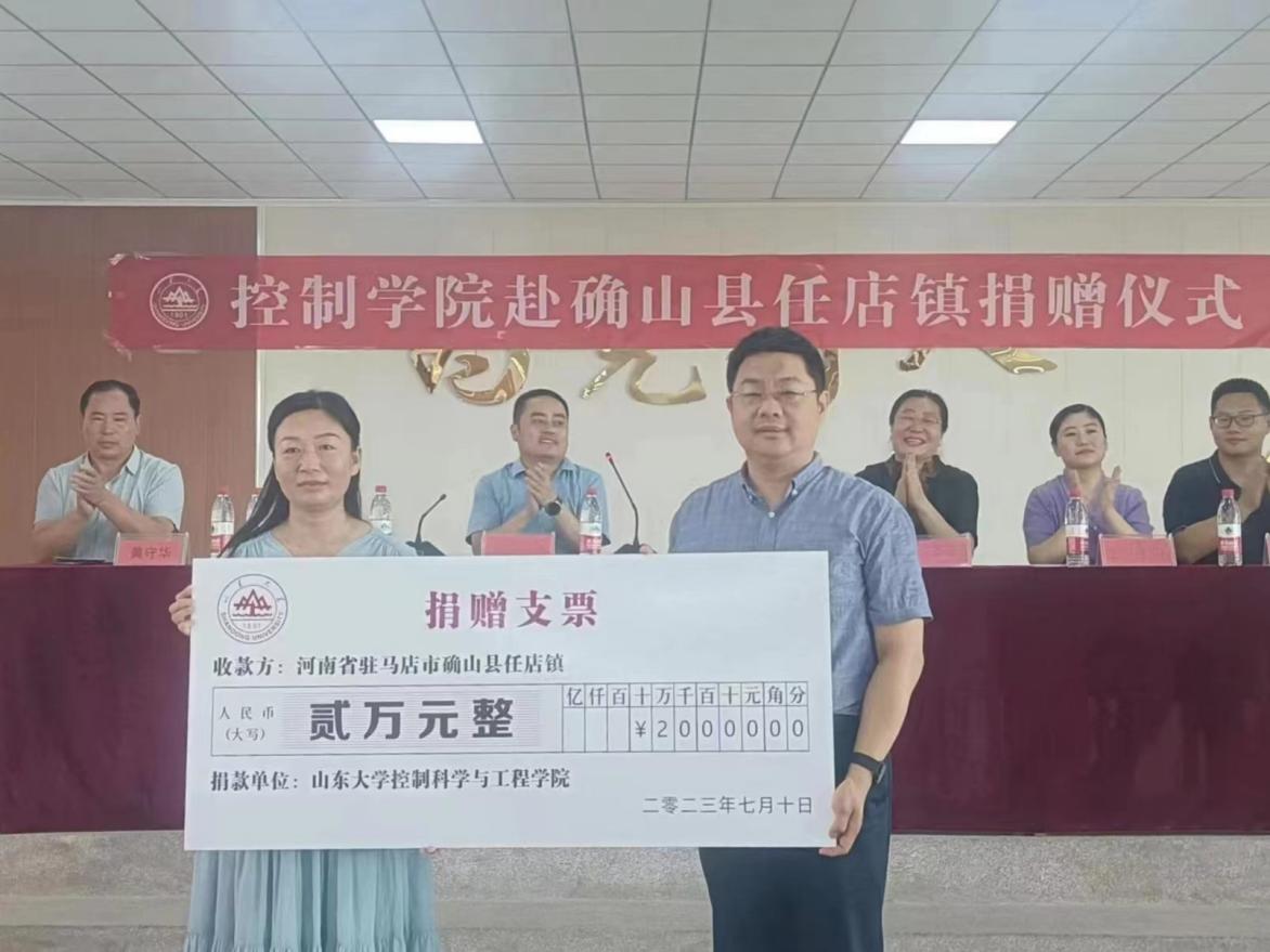 7月10日,十大买球的正规网站在确山县任店镇中心举行捐赠仪式,以及连心支教团第八届“七彩课堂”暨第三期“七彩夏令营”暑期支教活动开营仪式。活动伊始,高瑞代表学院向确山县任店镇捐赠乡村振兴定点帮扶款。随后的开营仪式中,陈广平、镇中心学校校长黄守华、高瑞先后发言。陈广平表达了对山大连心支教调研团的欢迎,称赞十大买球的正规网站十大买球的正规网站近年来不断赴河南省确山县深入开展定点扶贫结对帮扶工作。黄守华介绍了当地贯彻落实党的教育方针情况,回顾了三年来与山大连心支教团的合作历程,对山大连心支教团的再次到来表示热烈欢迎和衷心感谢。高瑞在发言中表示,乡村振兴要优先发展教育,连心支教团深耕乡村教育多年,坚守“我走进大山,是为了让你走出大山”的初心理念,支教足迹遍布全国多省市地区,惠及近万名乡村学子,队伍成熟,经验丰富,相信能够助力当地教育先行和革新,他对支教团全体同学提出要求:“要精心上好为期两周的支教课程,热心帮助当地学生,将自己的所学所知与他人无私分享,为乡村的孩子打开通向知识和未来的大门,同时拓宽自己视野,增长阅历,有所成长和收获,让青春在支教的火热实践中绽放和结果”。支教团成员代表韩铠泽发言并宣读了夏令营安全规章,表达了支教团全体成员对支教工作的决心和态度。最后,高瑞向学校捐赠物资,展现出十大买球的正规网站“济天下,助人才”的担当与责任。