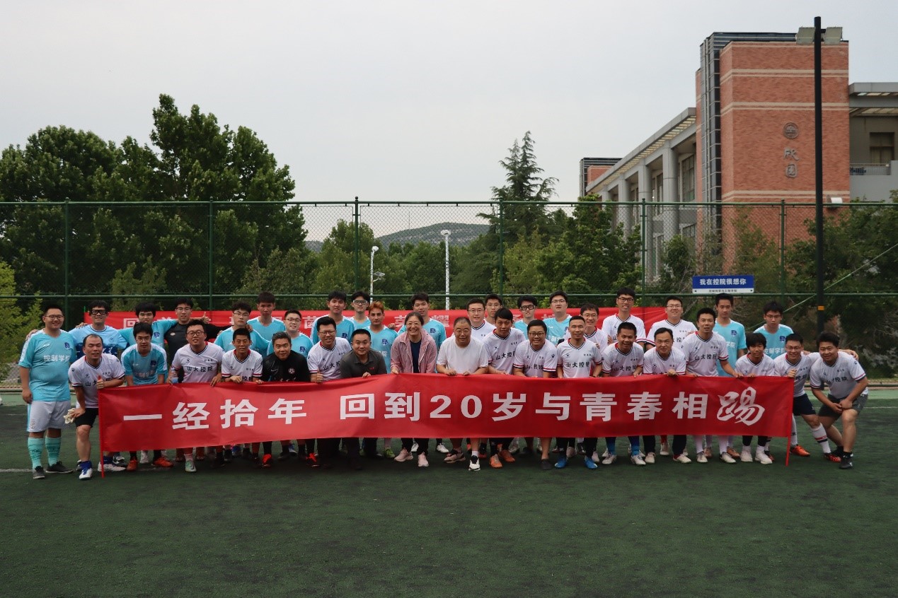 比赛开始前,控院校友队与学院足球队举行了隆重的入场仪式,双方队员相互击掌致意,彰显出深厚的校友情谊。绿茵场上,校友们展现了不减当年的风采,每一次精准的传球、敏捷的过人和犀利的射门都仿佛将他们带回了那个热血沸腾的20岁。尽管岁月在他们身上留下了痕迹,但他们对足球的热爱和对青春的怀念却丝毫未减,两支球队共同上演了一场精彩的巅峰对决,现场氛围热烈,激情洋溢。经过激烈的角逐,校友队最终以5:4的比分赢得了这场友谊赛的胜利,为这场比赛留下了难以忘怀的竞技记忆。赛后,校友们纷纷表示,时隔多年能够有机会回到学校参加这场具有特殊意义的比赛非常高兴,既重温了昔日的美好时光,更感受到了学院对他们的关心与重视,与学生同场竞技,以足球为纽带,共同回忆青春岁月,希望此类活动能继续开展下去,在拼搏中增进友谊和交流。