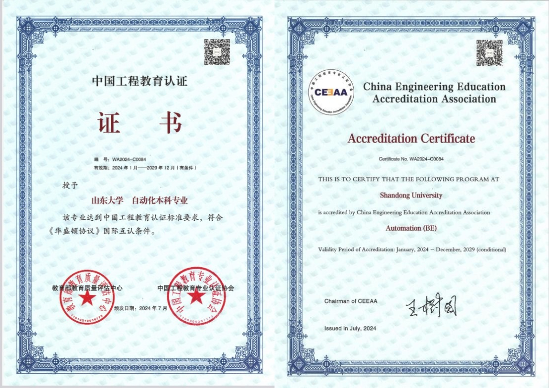 四是深耕教学研究,构建特色专业体系。依托学院自动化国家级一流本科专业建设点,加强一流学科建设,坚持把专业建在优势学科平台上。十余年来,围绕专业建设国际化、人才培养多元化和课程体系智能化,锐意推进改革,不断开拓创新,取得了显著成效,备受业界好评,连续三届以独立完成单位蝉联国家级教学成果二等奖,成功打造了独具“山大特色”的自动化类专业新工科人才培养体系,被誉为“山大模式”。
