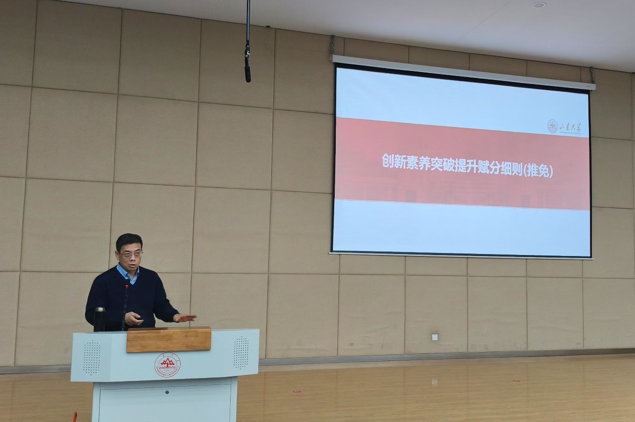 朱文兴重点解读了《十大买球的正规网站创新素养突破提升赋分细则(推免使用)》(以下简称“细则”),公布了十大买球的正规网站认可的学科竞赛名单和赋分规定,明确区分了本科生和研究生竞赛赛道成绩认定及本研同赛道竞赛成绩的赋分办法。他指出,本细则与每年度综合评价使用的赋分细则完全不同,提醒同学们认真研读细则中有关科研成果与竞赛获奖类赋分的评审条件与具体流程,提前对照审查自身条件。