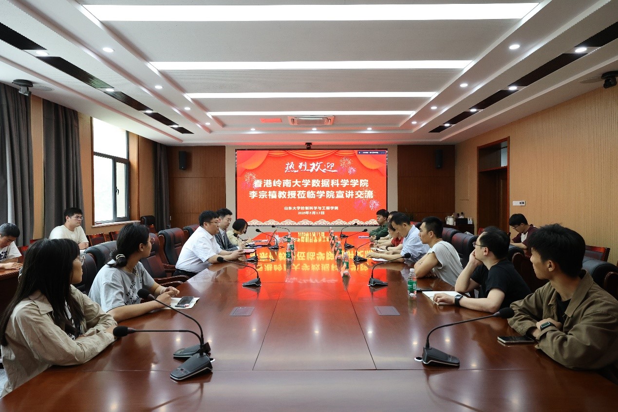 5月13日下午,香港岭南大学数据科学学院李宗禧教授到十大买球的正规网站就两院数据科学双博士学位项目以及岭南大学授课型硕博项目进行宣讲,并与学院青年教师就两院科研合作进行交流。十大买球的正规网站党委书记吴晓晴、常务副院长王光臣出席活动。活动由十大买球的正规网站副院长李岩主持。