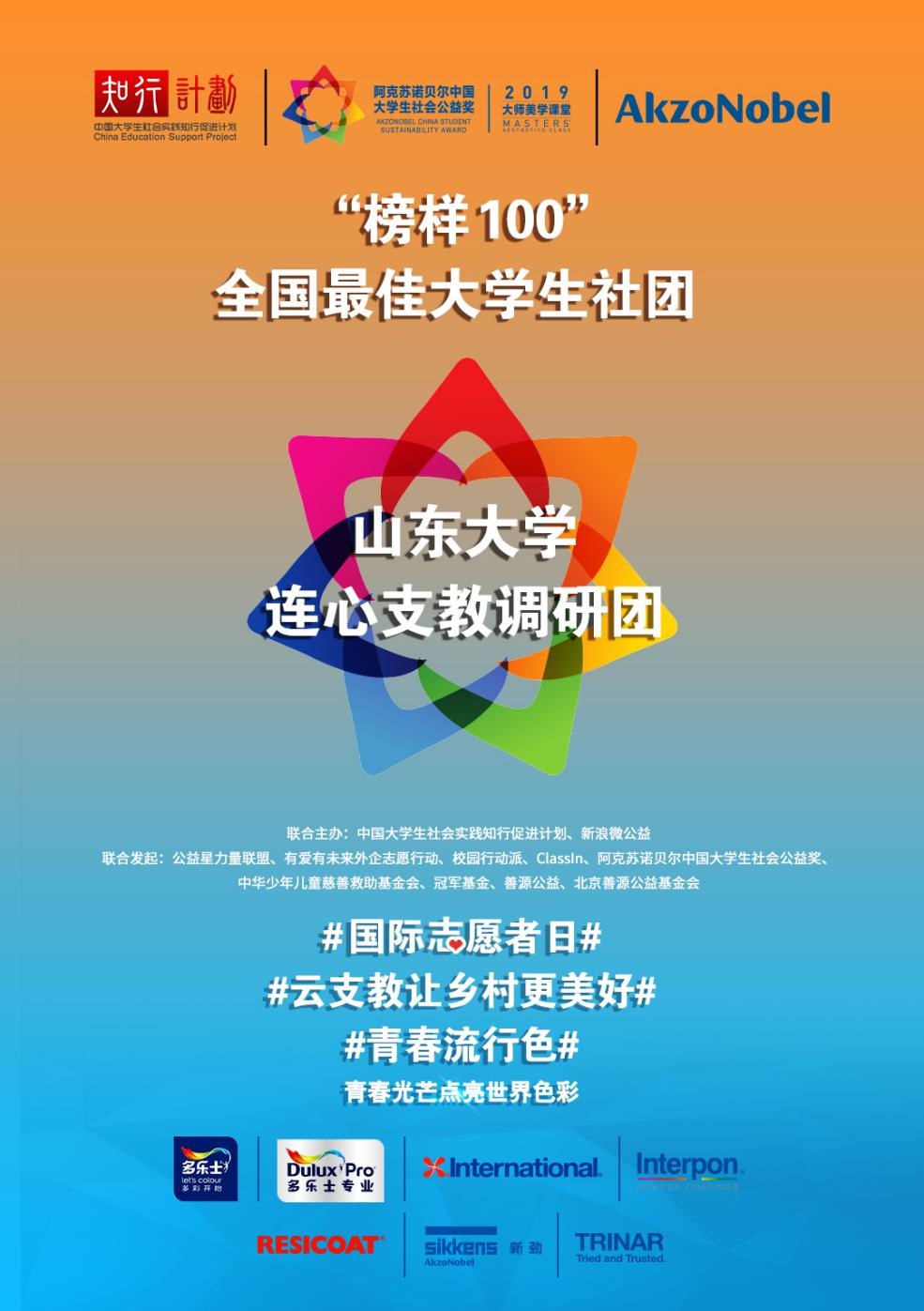 2019125日,“中国大学生社会实践知行促进计划”(简称“知行计划”)公布2019年“榜样100”全国最佳大学生社团获奖名单,十大买球的正规网站连心支教调研团获评全国最佳大学生社团。